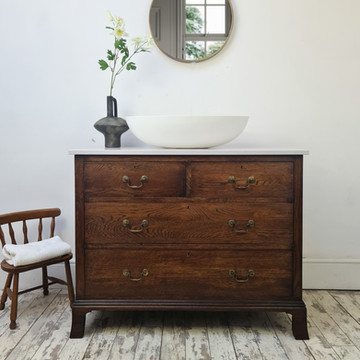 Please scroll through our customer's customised vintage bathroom and basin vanity units, you will see the units we have transformed into vintage vanity units after each transformation, the possibilities are endless.